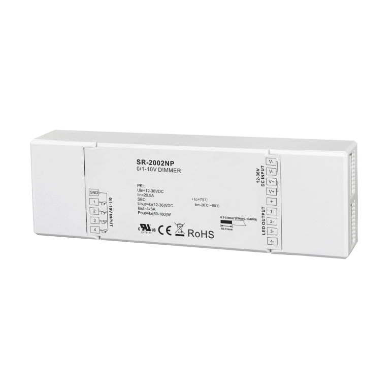 LED dimmer SR-2002NP - 4-channel dimmer with an input signal of 0/1-10 V, 4-channel PWM output.