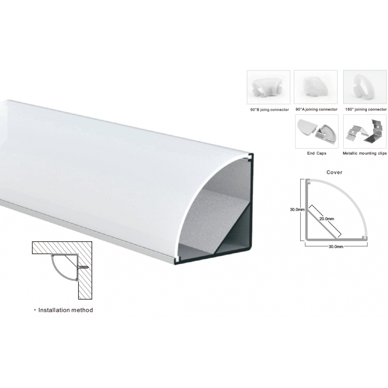 The matte diffuser for the profile LP-SL090A is widely used for focusing and directing the light flow from the LED strip. It is suitable for both surface-mounted and recessed aluminum profile LP-SL090A.