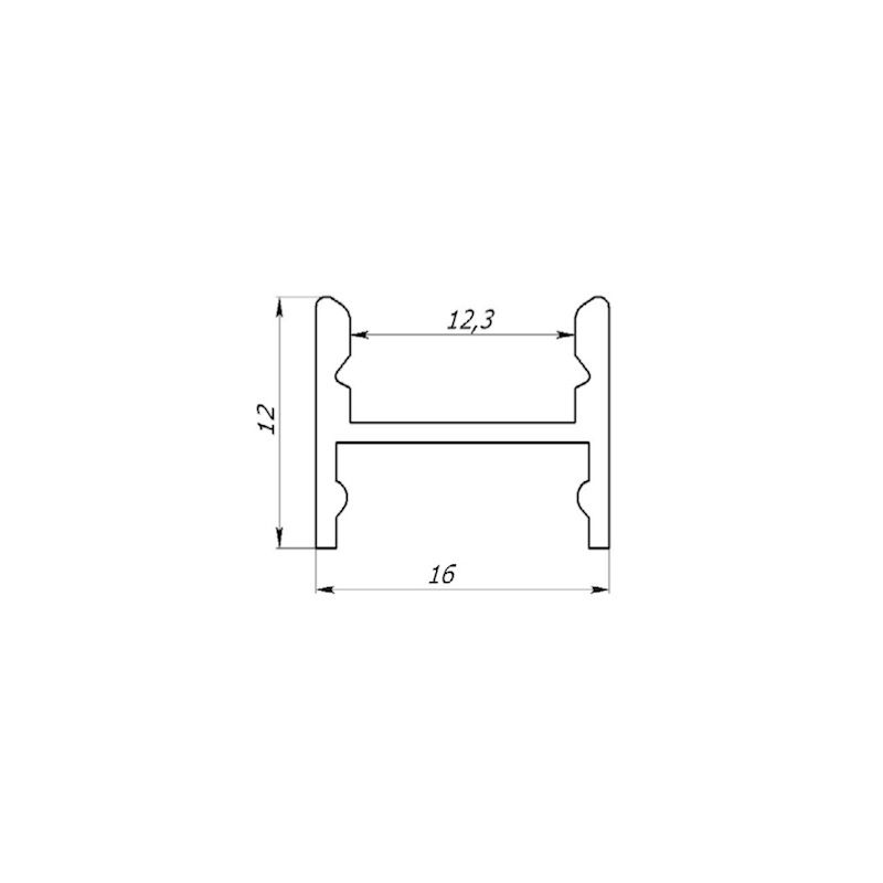 The profile for the LED strip LPS12 is a compact surface-mounted anodized aluminum LED profile.