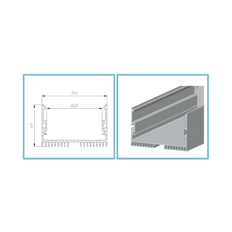 The aluminum profile LS70 is intended for suspended or surface mounting and is ideal for high-quality general or accent lighting of spaces.