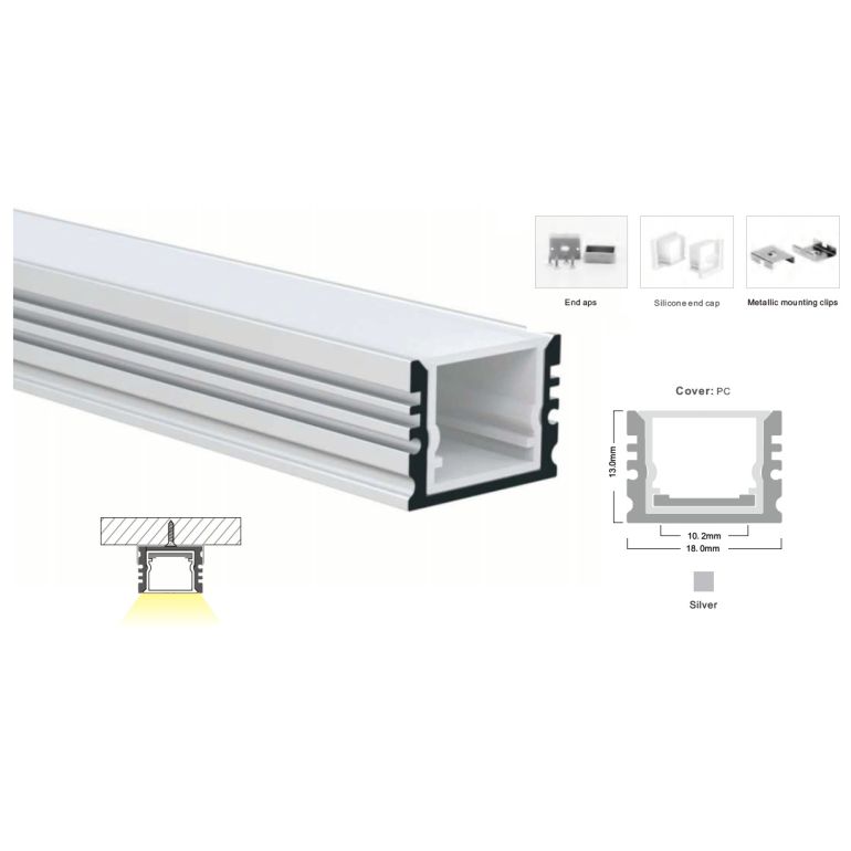 For solutions with a high level of IP protection. The diffuser consists of two parts: the matte polycarbonate diffuser itself and the internal metal part, which can be made in the form of a strip or an H-shaped profile.