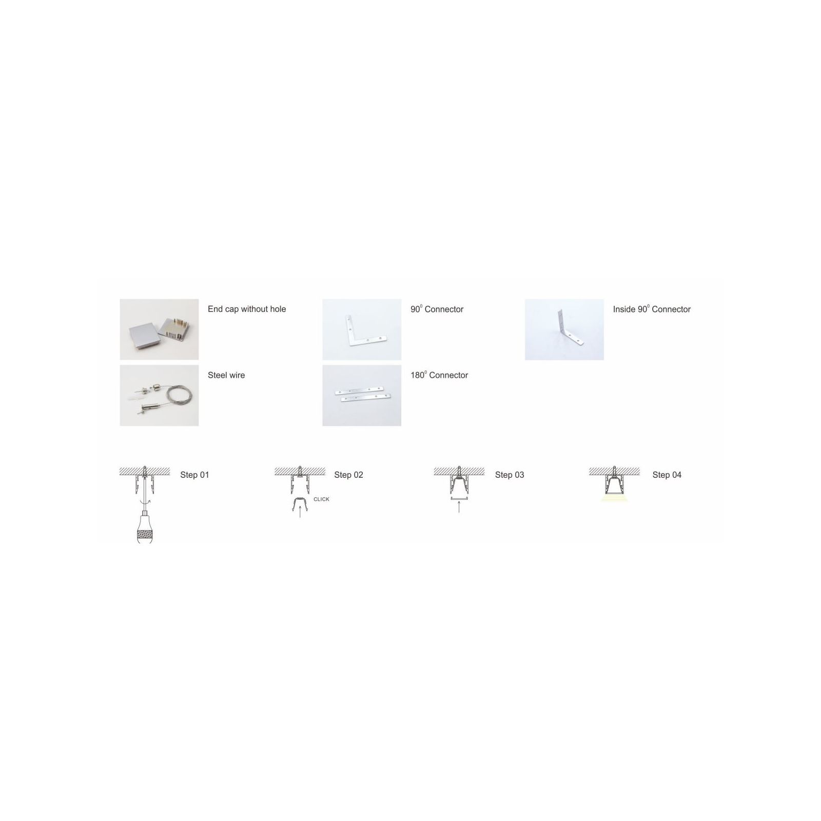 Diffusers (screens), end caps, connectors, and mounting hardware are purchased separately depending on the required quantity.