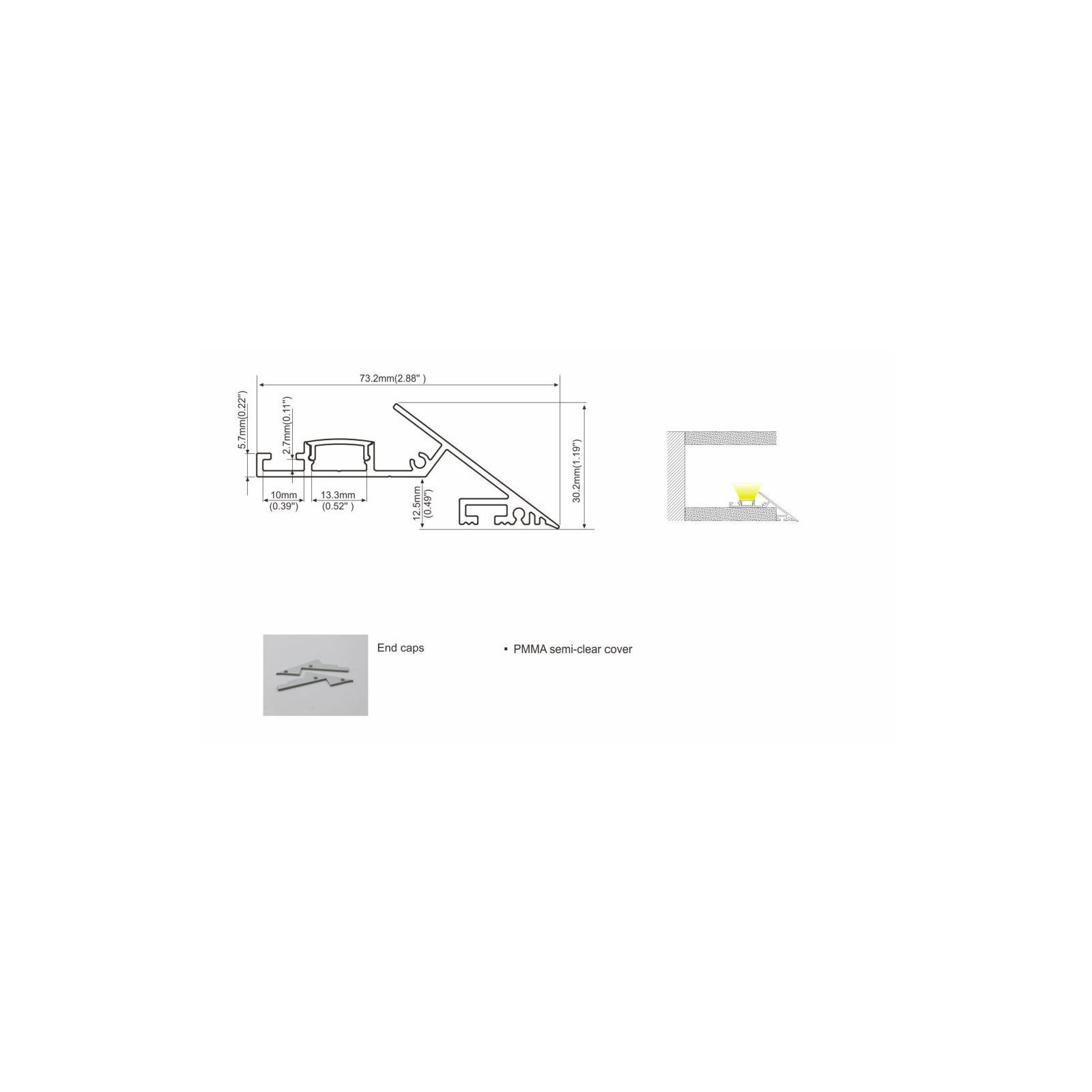 The aluminum profile LP-SALP091-E is designed for mounting LED strips and is used for lighting various objects. The optimal dimensions and design of the profile allow it to be installed in different ways and implement numerous design solutions.