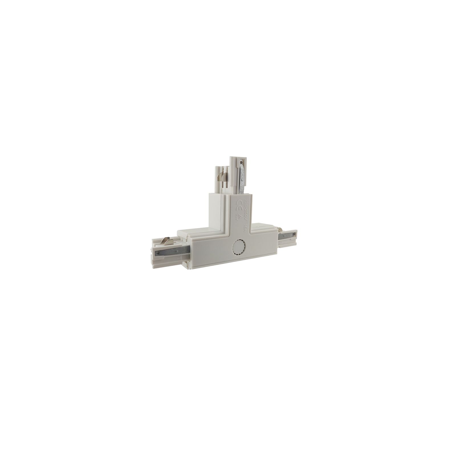 White connector for T-shaped connection of 3-phase busway WSO-Q. Internal arrangement of grounding contacts. L-central. Can be reassembled in any arrangement of grounding contacts.