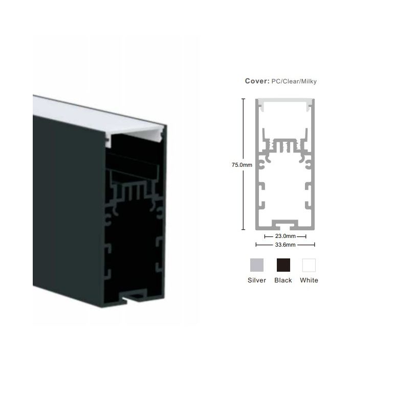 Description Aluminum profile SVL_LP-SPL101A -1m. (in slats of 3m) (75x34mm) non-anodized.