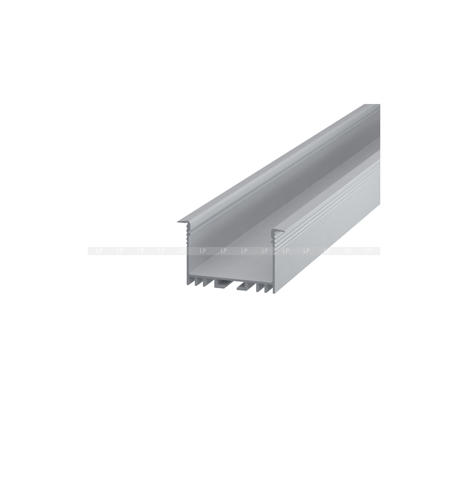 The recessed aluminum profile LSV40 for LED strip lights has the appearance of a box with protrusions on the sides. This profile is designed for installation in a groove and has side plates to mask the edge of the groove.