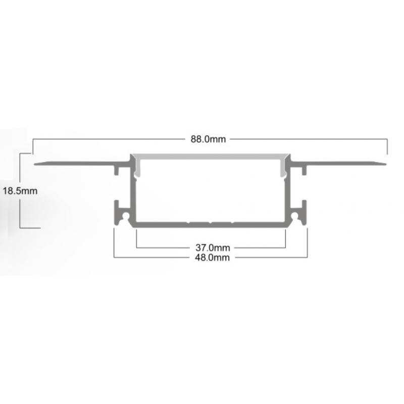 The recessed profile for LED strip LP - SPL083 has the appearance of a box with protrusions on the sides. It is designed for installation in a flush groove.