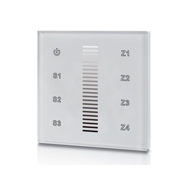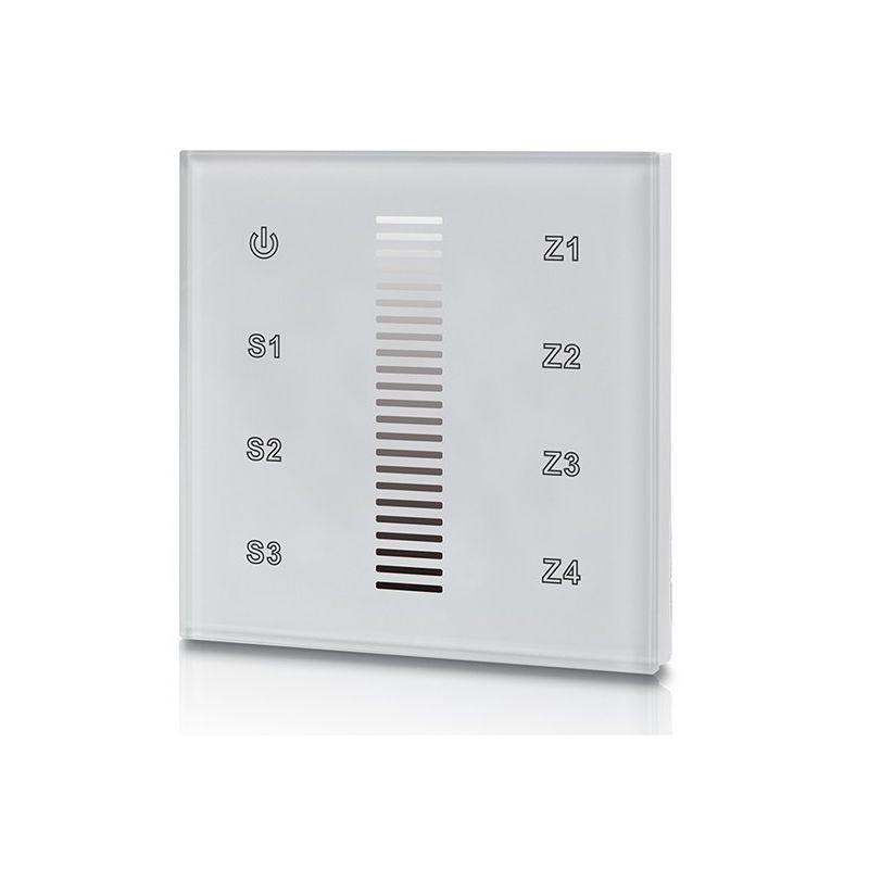Built-in white touch panel with DALI DT6 output. Control of four zones. For dimming single-color LED strips.