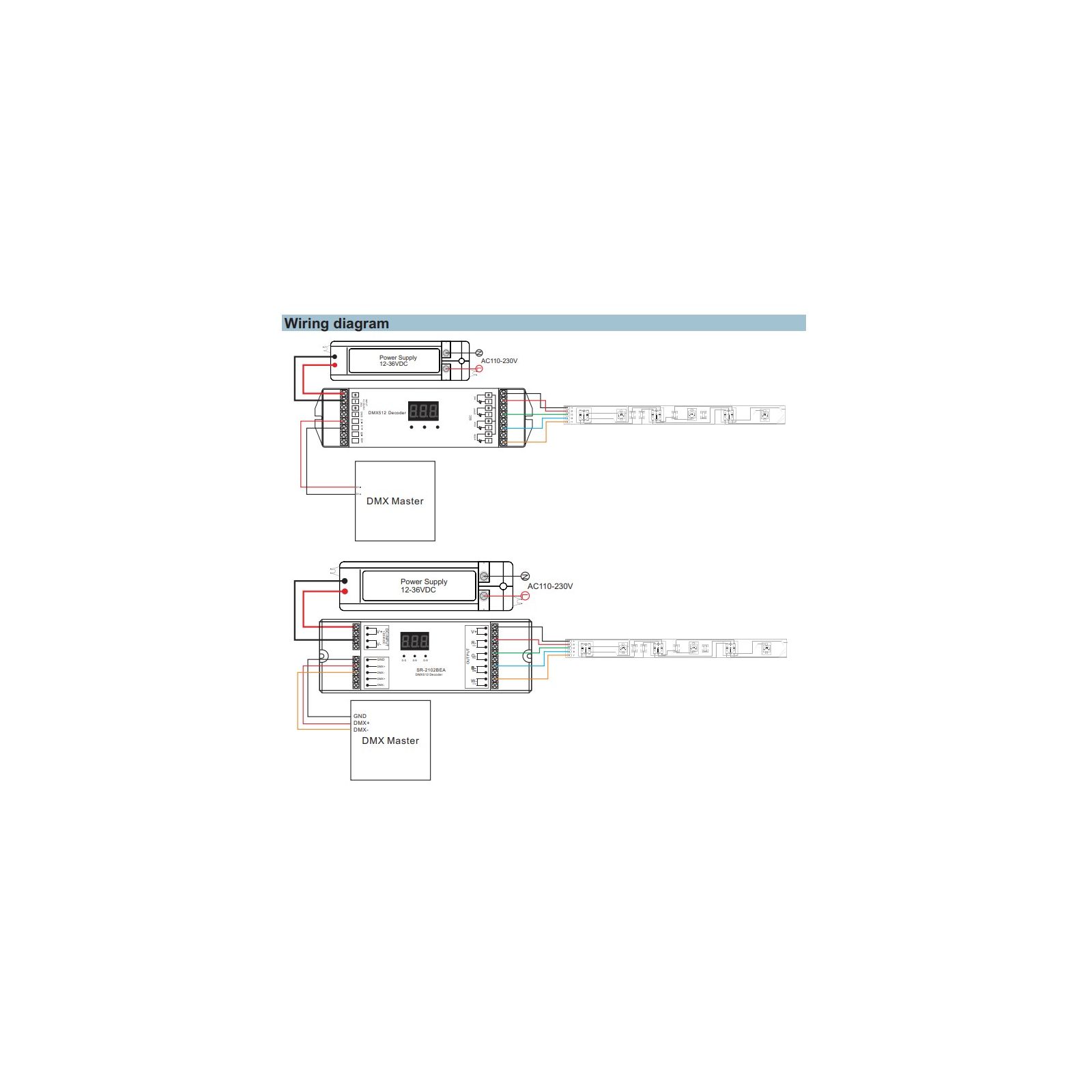• When connecting monochrome devices, all channels operate equally; for CCT devices, 1 of 3, 2 of 4 operate synchronously.