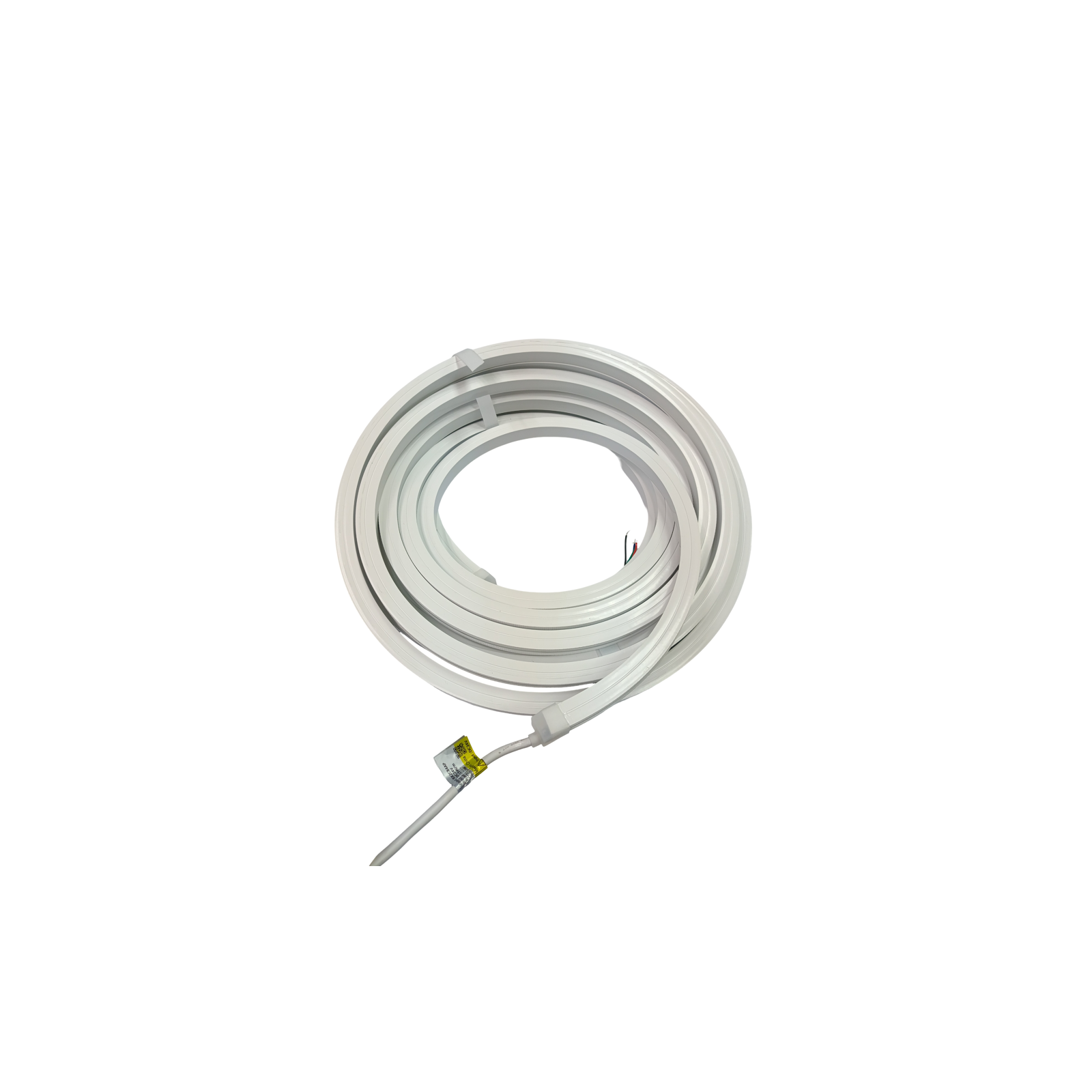 Neon with tape mounting on the bottom of the housing (top view) RGB 14.4W/m with housing dimensions of 16x16. The wide light section is a significant advantage over narrower neons, a 10m spool, 24V power supply, and single-side connection allow for the creation of long lines on the facades of various buildings. Additional end caps and the included aluminum profile can make this neon an excellent solution for decorative lighting.