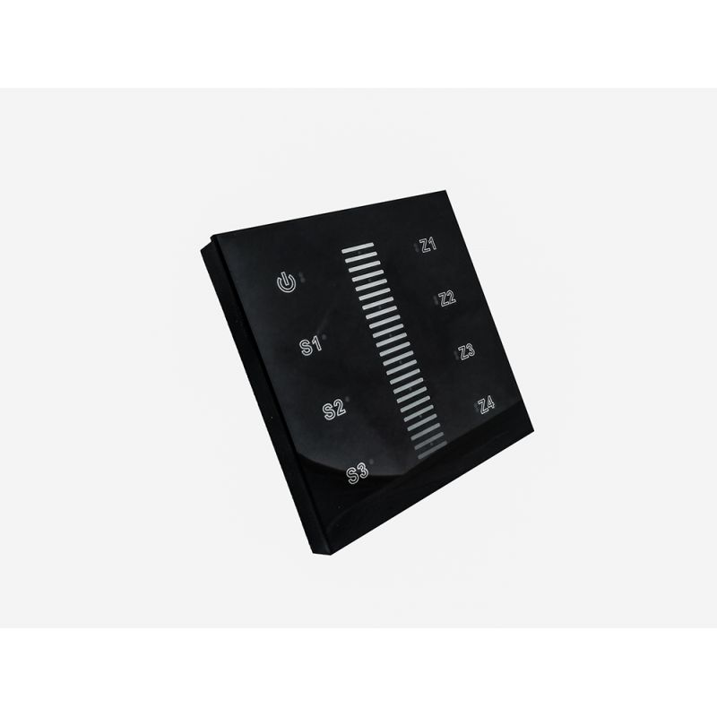 Built-in panel SR-2830A Black (220VAC, DIM, 4 zones) - black glass Touch panel with a touch slider, high quality from the manufacturer SUNRICHER. Control of single-color LED strip, 4 zones of radio channel control.