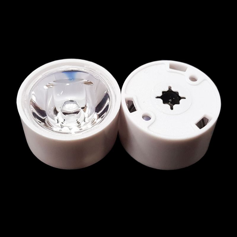 The HX-CSP-20 lens with a 20-degree angle and white holder has compact dimensions. Application: street lighting, decorative lighting, architectural lighting.