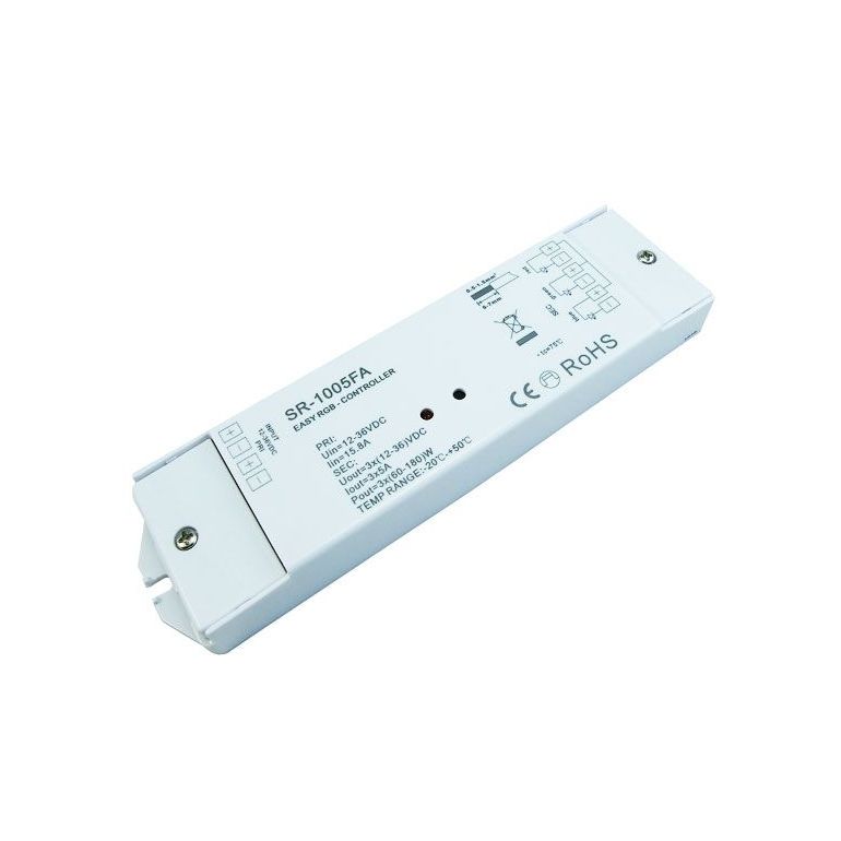 SR-1005FA is a controller designed for changing the color and brightness of RGB strips.