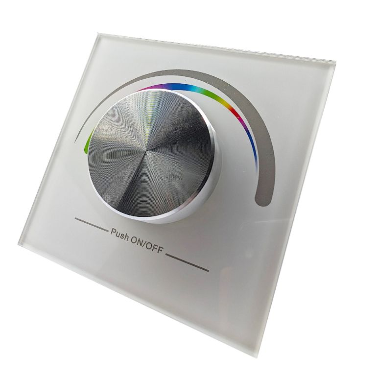 • Rotary dimmer for switching, adjusting brightness, and changing the color of the LED RGB strip.