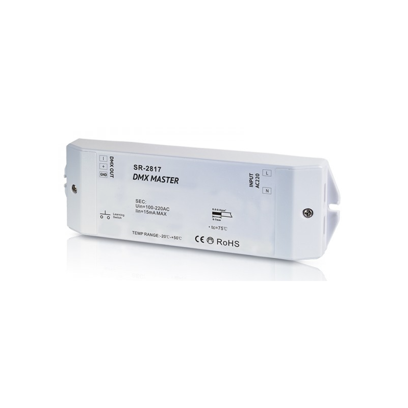 DMX receiver-controller for controlling DMX decoders using RF or WiFi remotes or mobile devices IOS or ANDROID. Converts RF or WiFi DMX signal to control decoders. With compatible remotes RS-1819 and 2819S, it is possible to connect and control up to 8 zones. Installation of up to 8 scenes in each zone. Pre-installed with 10 lighting scenarios with a pause function.