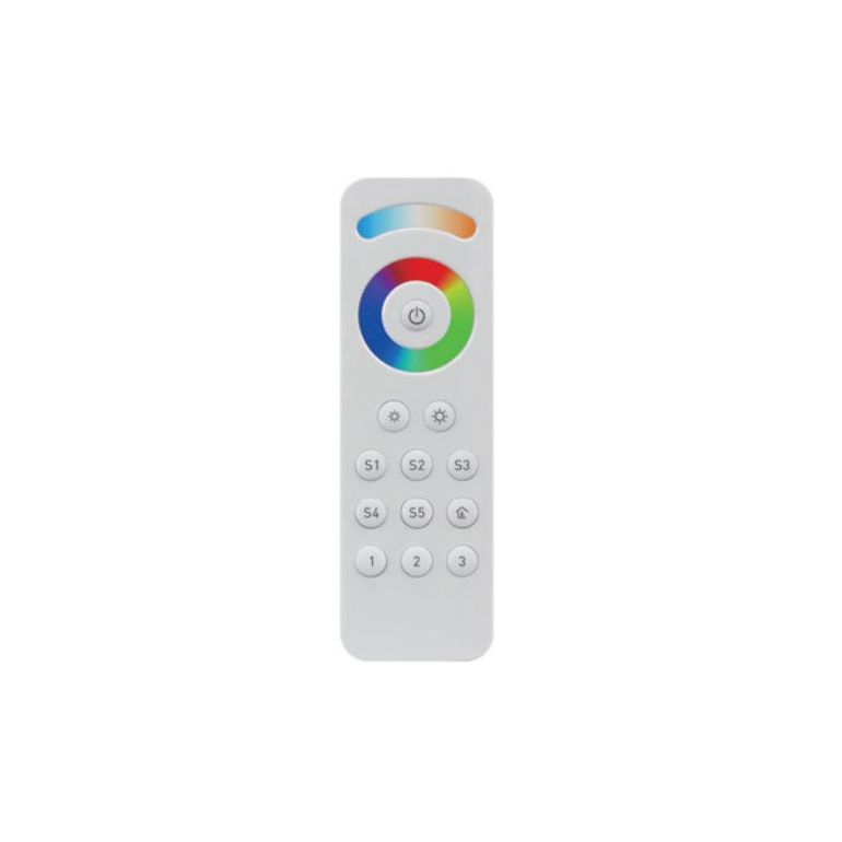 3-zone Bluetooth+RF remote control with a touch ring for brightness and color selection, for RGB+CCT strips, 3 control zones with memory for 5 scenes. Used with the controller SR-SB1029-5C and RF receivers of the series 1009xxxx.